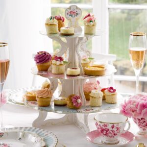 When it comes to table design you need to make sure you have a section for savory sandwiches, a section for scones, section for dessert and a section for tea service. You also want to decorate guest tables and the buffet.